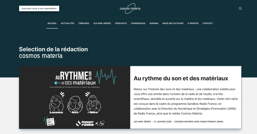 Open innovation : Cosmos Materia et l’équipe Hyperradio s’associent pour une mini-série centrée sur le son et les matériaux